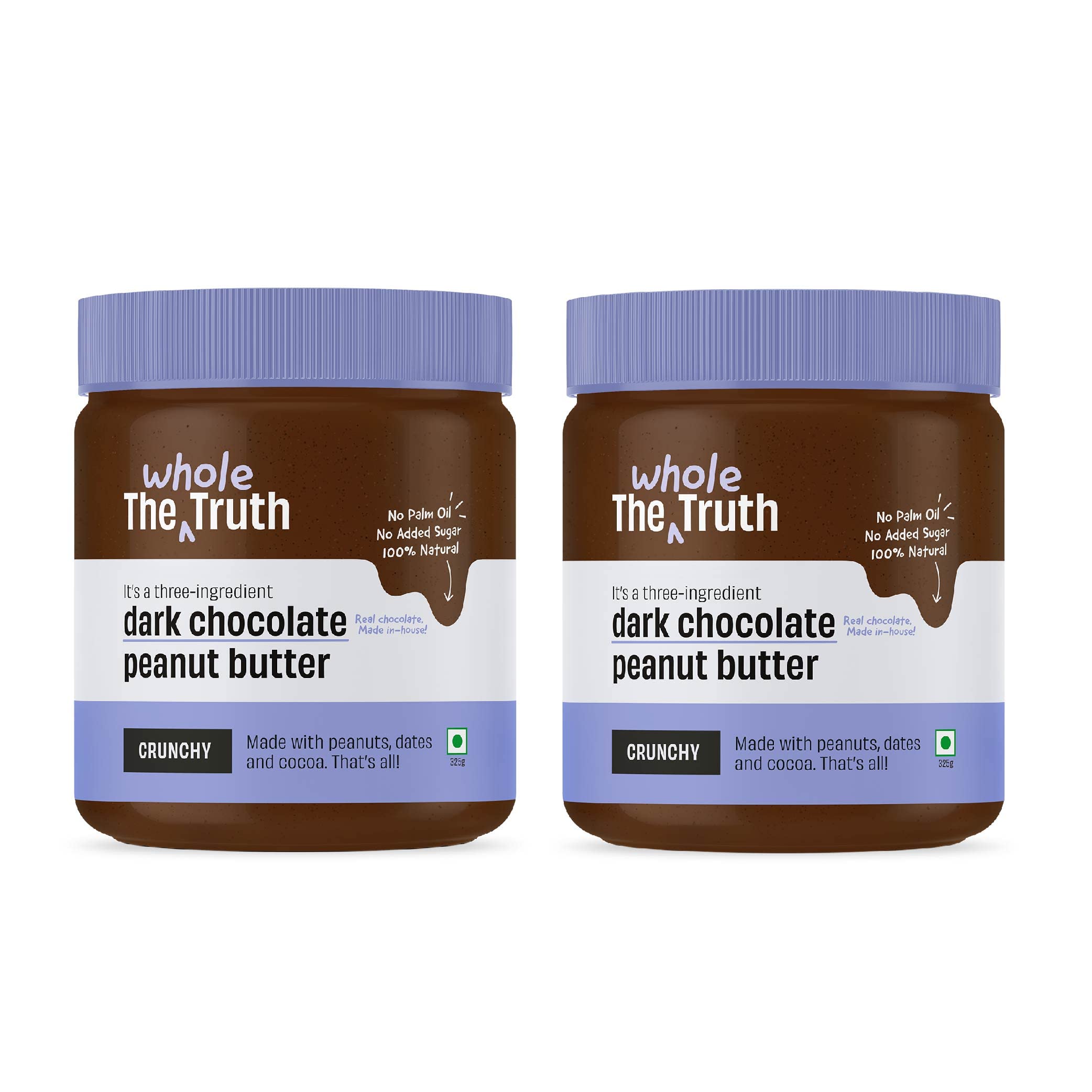 The Whole Truth Dark Chocolate Peanut Butter | Pack of 2 | Crunchy | No Added Sugar | No Artificial Sweeteners | Gluten Free | No Preservatives | 100% Natural Protein Source 650 gram