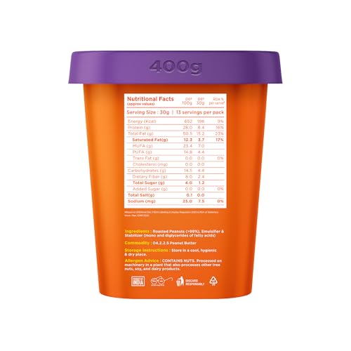 Yogabar 100% Pure Peanut Butter | Creamy & Yummy Unsweetened | Slow Roasted | Non-GMO Premium Peanuts | No Added Sugar - 400gm