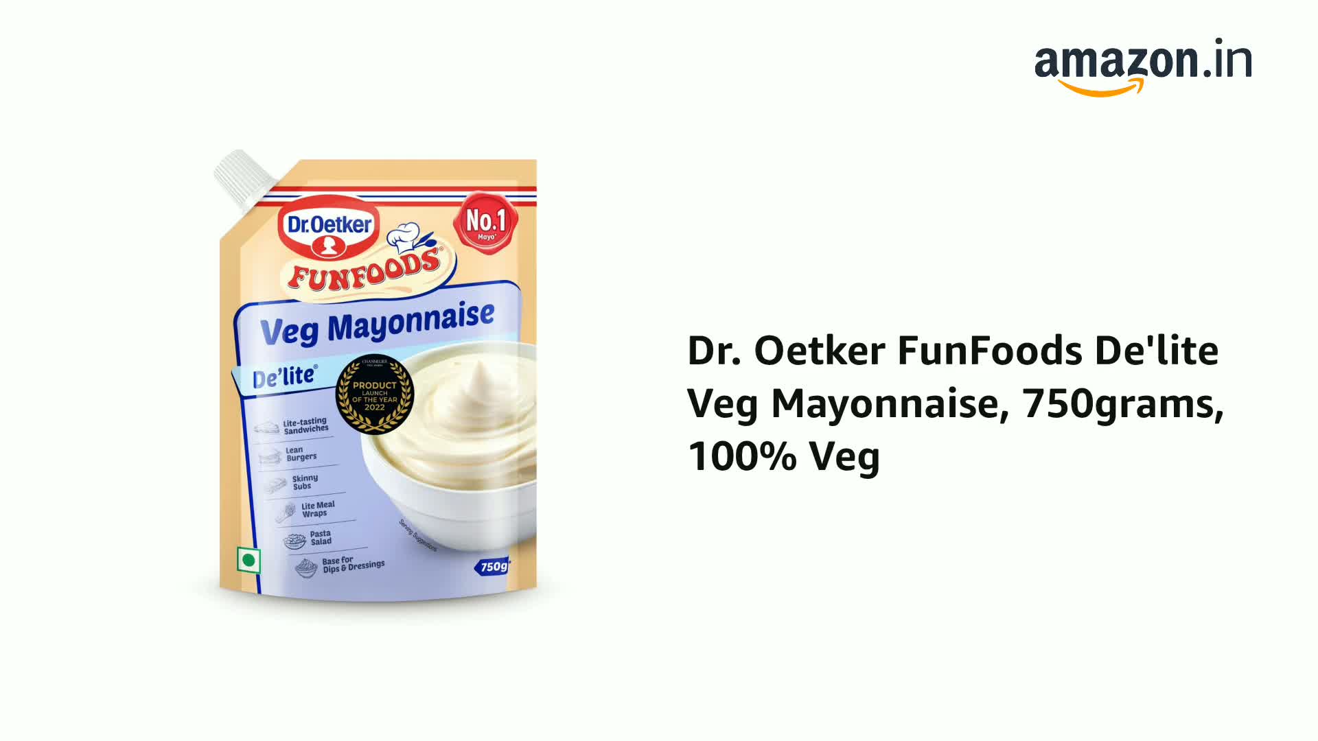 Dr. Oetker FunFoods De'lite Veg Mayonnaise, 750grams, 100% Veg