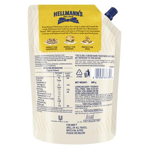 Hellmann's REAL Mayonnaise, 100% Vegetarian Creamy Mayo Used For Dressings And Condiments, 800 grams