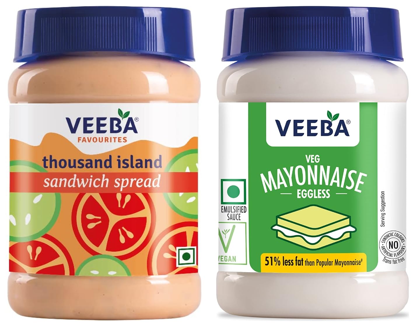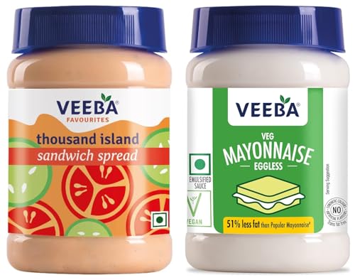 HomeGroceryFlavorsMayonnaiseVeeba Thousand Island Sandwich Spread, 250g & Veeba Eggless Mayonnaise (250g) I Veg Mayonnaise I 100% Vegetarian Mayo I Extra Creamy and Delicious I Rich and Thick Texture I Dip, Spread and Dunk