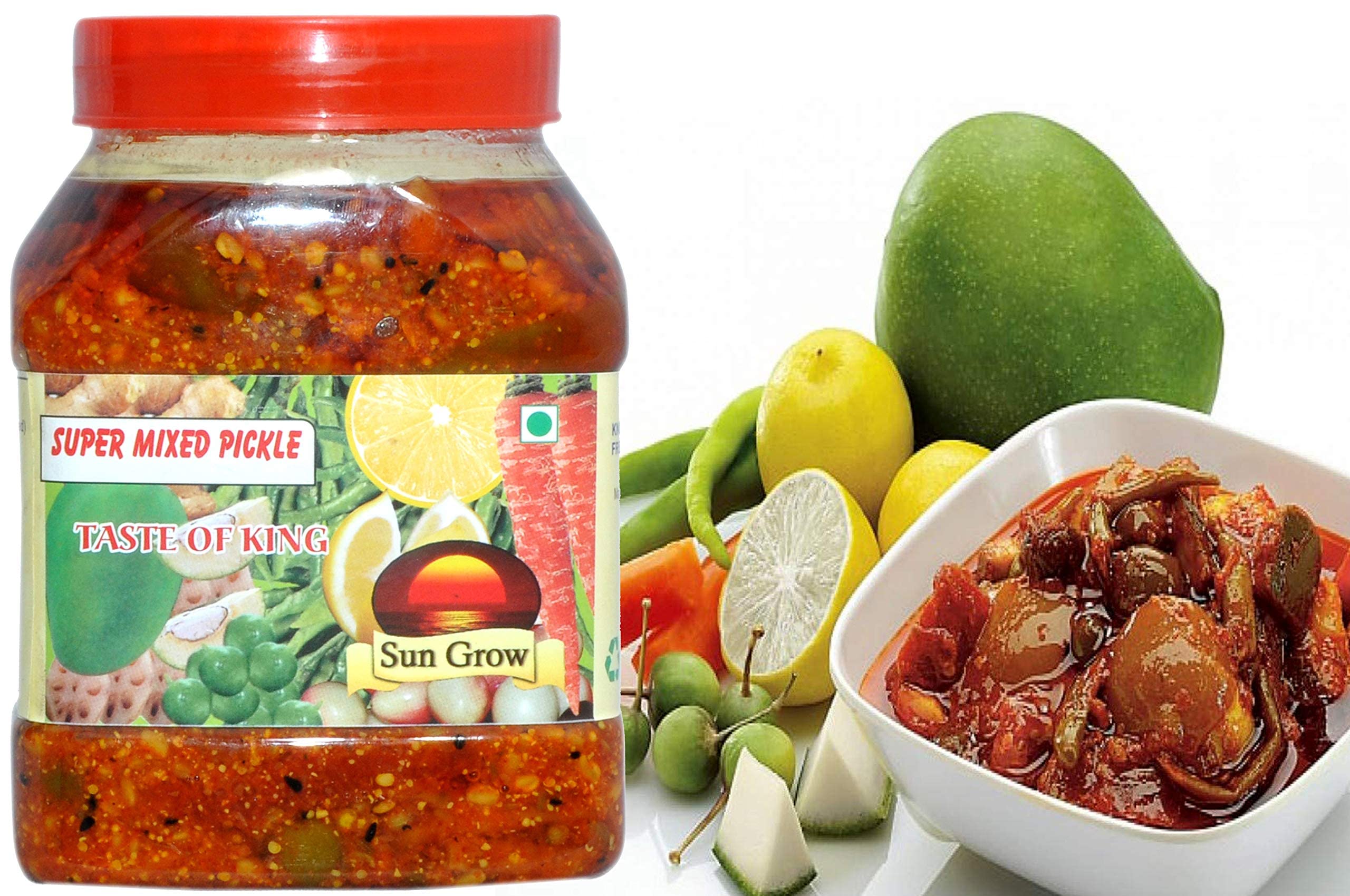 HomeGroceryFlavorsHomemade PicklesSun Grow Organic Punjabi Pickle Home Made,Hand Made & Mother Made Herbal Masala Organic Punjabi Super Mixed Pickle Masaledar Homemade Flavour & Taste. 850g