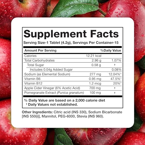HomeGroceryFlavorsSauces & VinegarPLIX Apple Cider Vinegar Effervescent Tablets with The Mother, 700mg ACV with VIT B12, B6, Pack of 4 | Vegan, No Added Sugar, Non-GMO & Gluten-Free