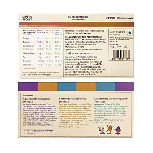 Open Secret Cookies |12 Assorted Chocolate & Dryfruit Cookies |Healthy & Tasty |Immunity Boosting Nuts (Almond, Cashew, Peanut) |No Maida |Gift Hamper for Mom/GrandMother/Family/Kids
