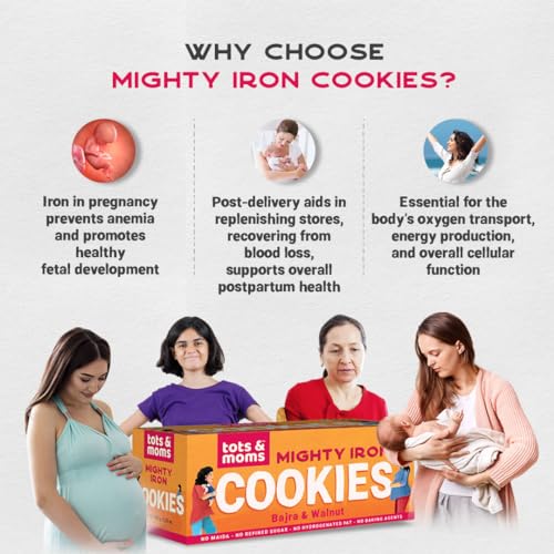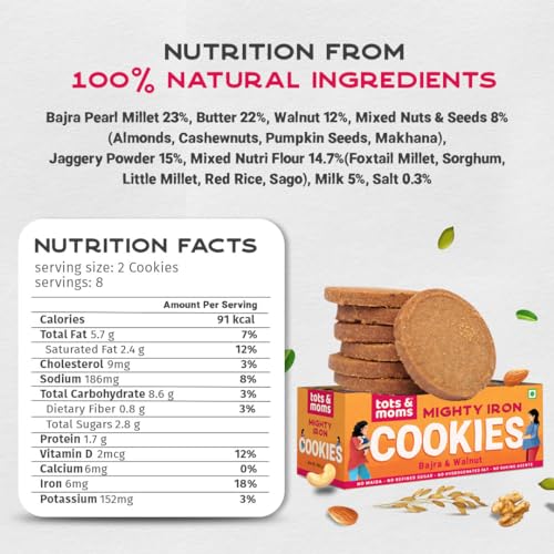 Tots & Moms Foods - Mighty Iron Cookies - Bajra & Walnut | Boost Pregnancy Nutrition | Lactation Cookies for Breastfeeding mothers | Millet & Jaggery Junk-free Snack - 150g