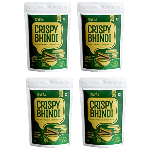 Rivera Crispy Bhindi (Jain)Okra Chips Vegetable Snacks Vacuum Cooked So No Need To Cook Ready To Eat 50G Each (Pack of 4)