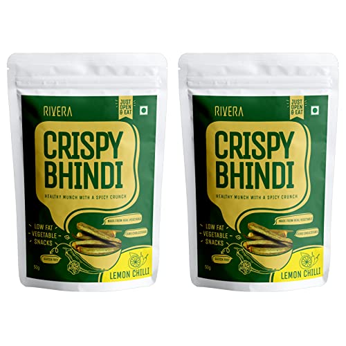 HomeGrocerySnacksChipsRivera Crispy Bhindi (Lemon Chili) Okra Chips Vegetable Snacks Vacuum Cooked So No Need To Cook Ready To Eat 50G Each (Pack of 2)
