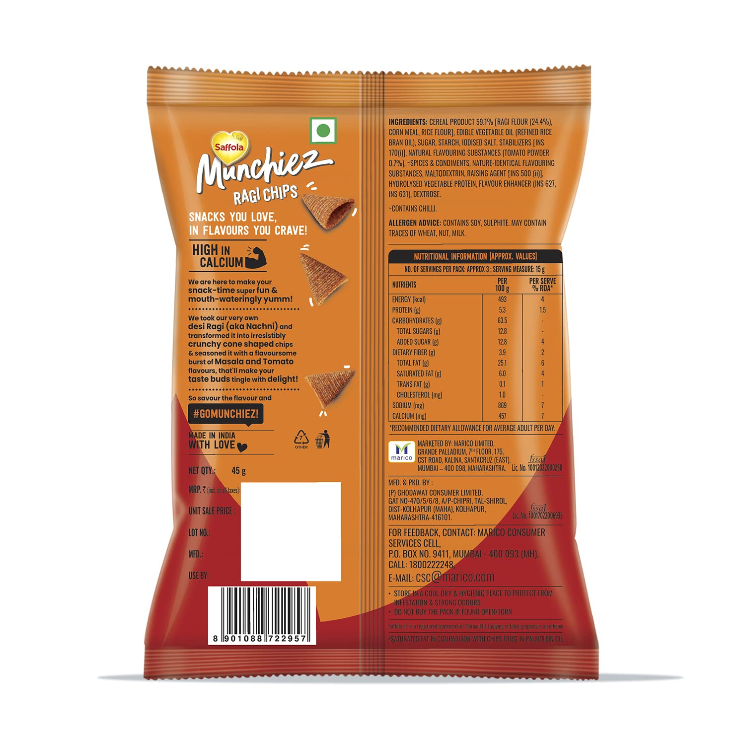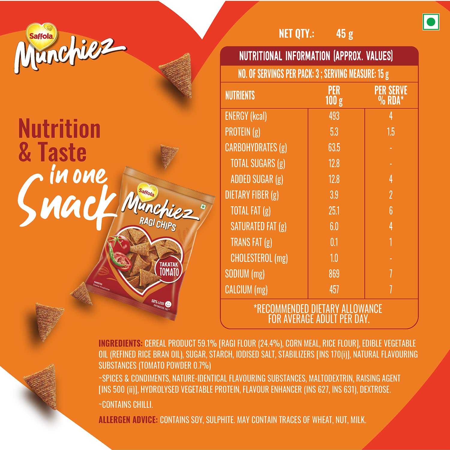 Saffola Munchiez Ragi Chips Takatak Tomato 45g