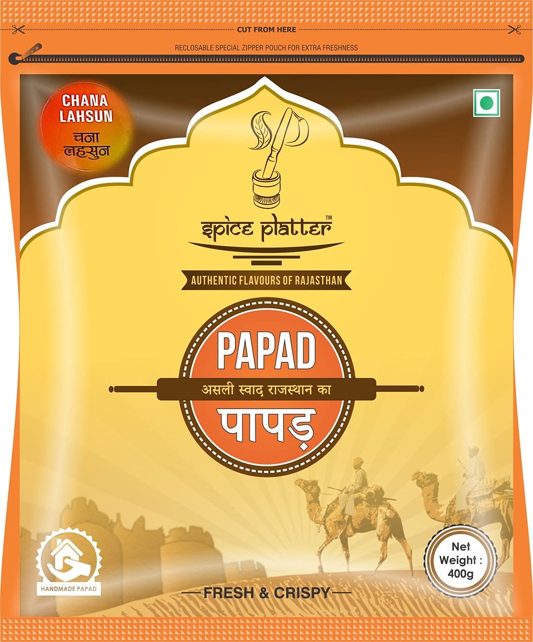 Spice Platter Sajji Chana Garlic Papad - 1600g Handmade Papad | Special Ziplock Packet | Pack of 4-400g Each (Chana Garlic)