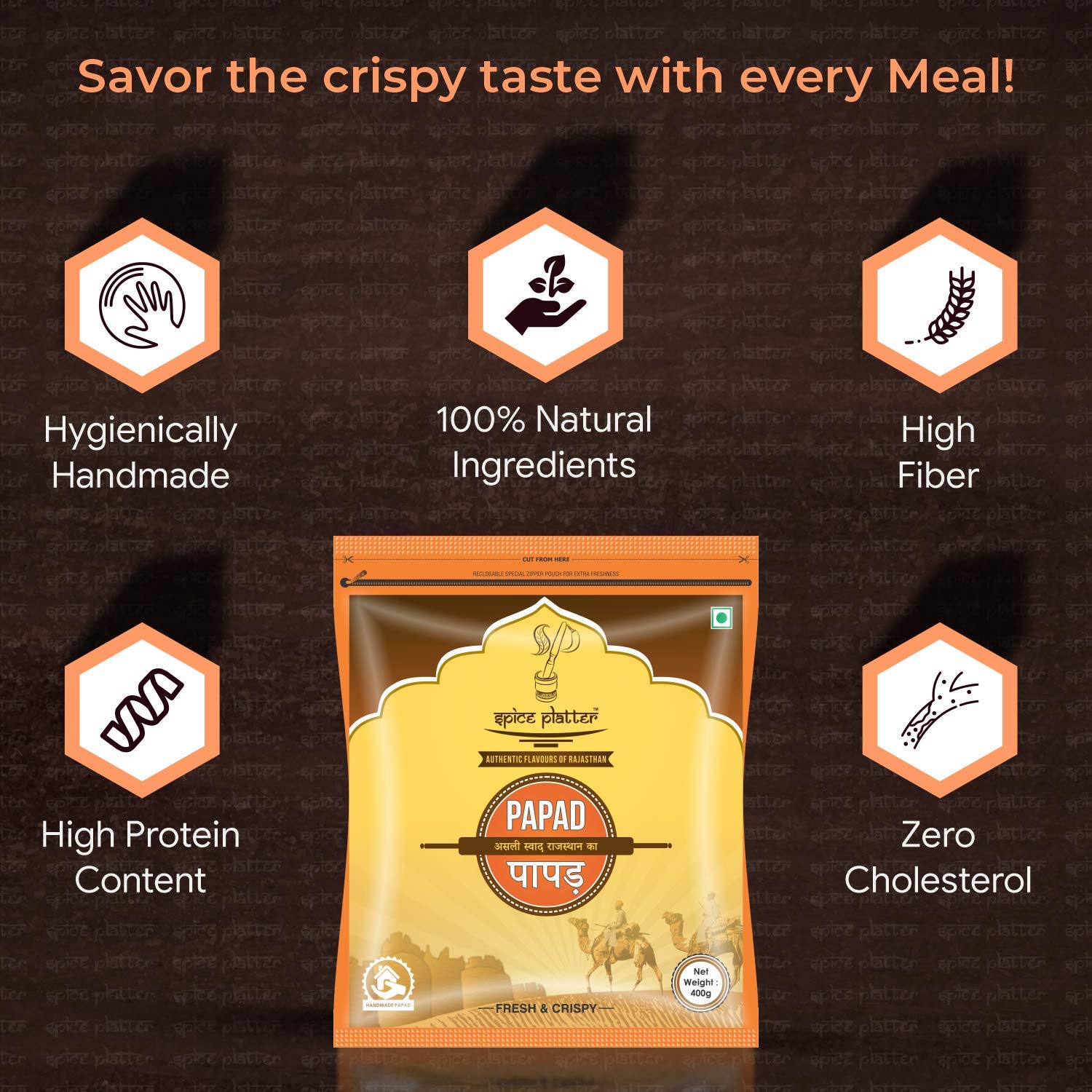 AUTHENTI RAJASTHANI TASTE : These crispy poppadoms are made hygienically with finest quality of ingredients and special blends of spices that provides a Royal feeling in each bite.