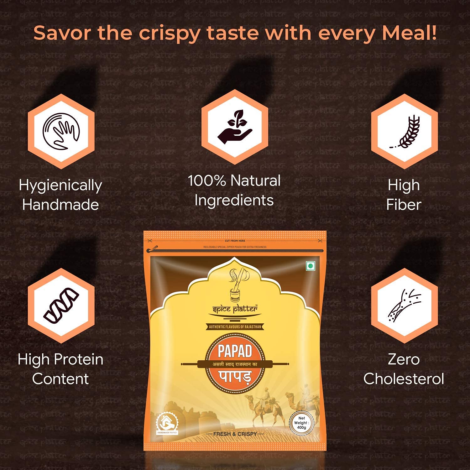 Papad Taste: Strong Spicy Rajasthani Taste and Hygienically Handmade Crisp Appetizer Snack poppadom