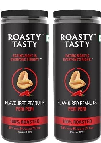 Roasty Tasty Flavoured Peanuts - Peri Peri | Roasted Peanuts | Healthy Ready to Eat Snacks | Diet Food for Weight Loss | Combo Pack Offer: Pack of 2-300gm (150gm Each)
