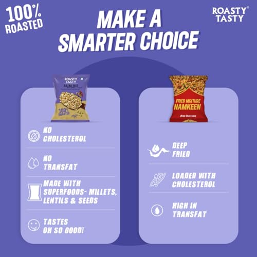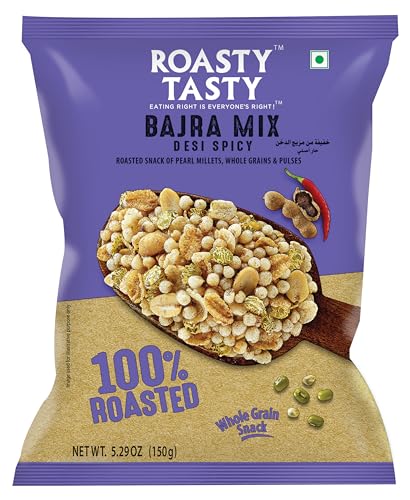 HomeGroceryNutsPeanutsRoasty Tasty Roasted Desi Spicy Crunchy Bajra Mixture Namkeen Millet Snacks (Bajra Moong Jowar Peanuts) - Pack of 5 (150g each) | Healthy Snacks for all | No Trans Fat | Export Quality | Great Diet Snack for weight loss