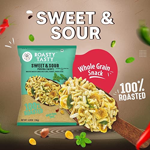 Roasty Tasty Roasted Sweet & Sour Mixture Pudina Whole Grain Indian Snacks Pack 200g | Healthy Snacks for all | Roasted Indian Namkeen