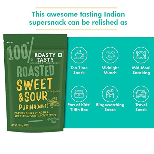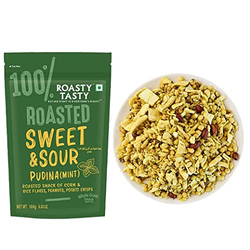 UNIQUE FLAVOUR: Roasty Tasty Sweet & Sour Namkeen Mixture is made with pudina and mint flavour. This mixture gives a Khatta Mitha Namkeen flavour to this snack. Its is fire roasted not fried and acts as an immunity booster with great taste to ensure less