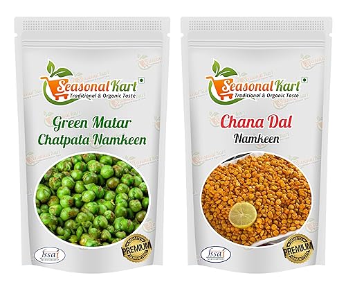 HomeGrocerySnacksNamkeenSEASONALKART Combo of Masala Green Matar & Chatpata Chana Dal Crispy Namkeen Snacks | Each 200 gm Total Weight 400 gm | Roasted Green Peas Masala & Chana Dal