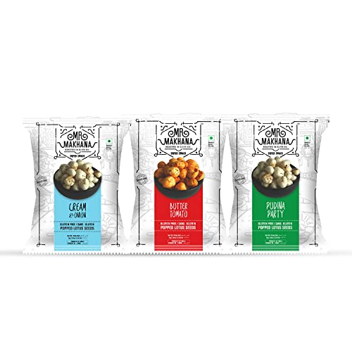 Mr. Makhana Roasted Makhana & Foxnuts : Pudina Party Cream & Onion Butter Tomato (Pack of 3x75 gm) | Gluten Free | MSG Free | Roasted in Olive Oil | Rich Calcium | Zero Trans Fat | Zero Cholesterol