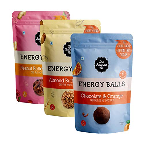 The Butternut Co. Energy Balls Variety Pack (Almond Butter & Oats Peanut Butter & Berries Chocolate & Orange) Dates Dried Fruit & Nut Snack Balls 288g (Pack of 6) 100% Natural No Sugar Vegan No Preservatives Clean Label