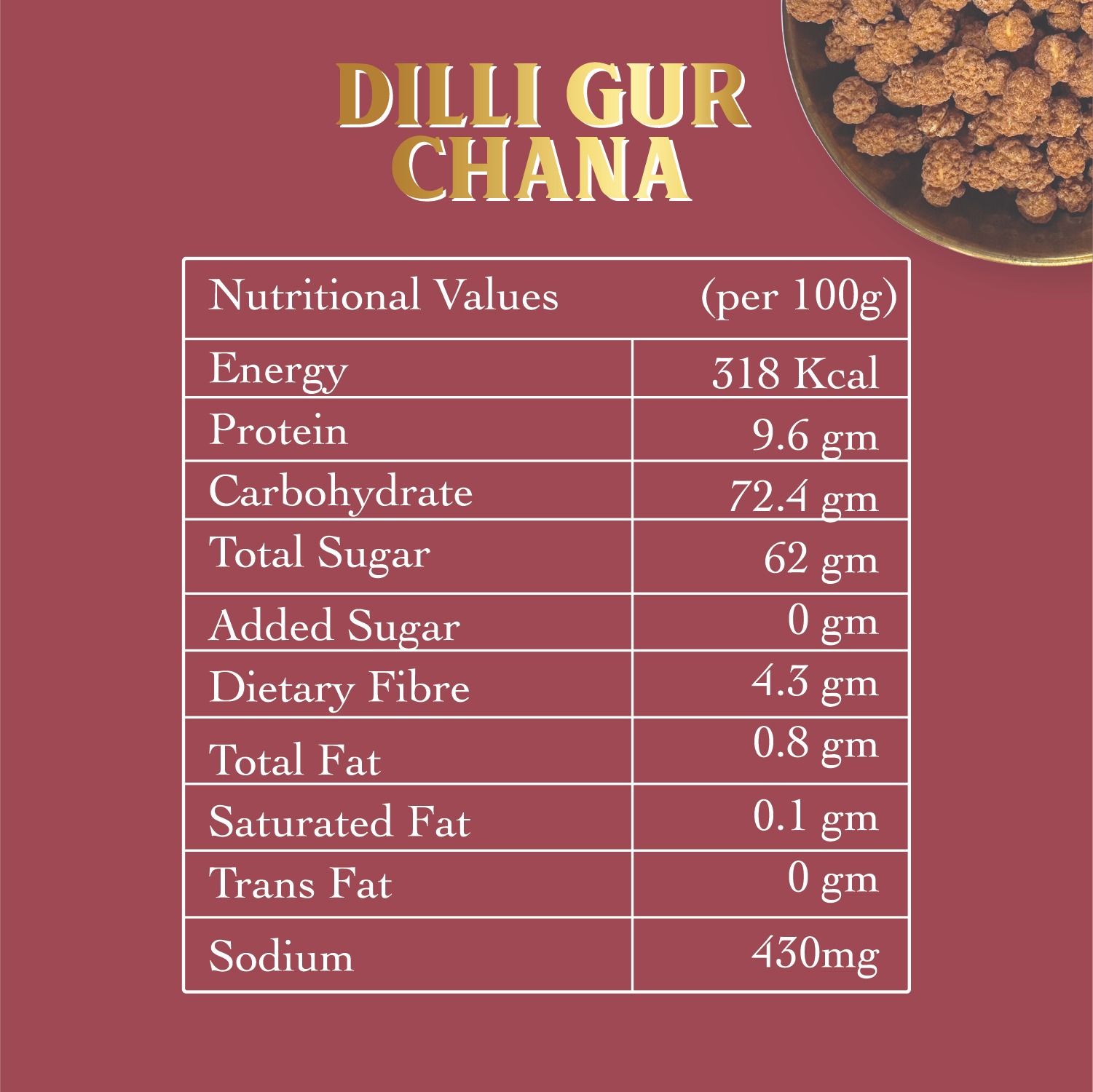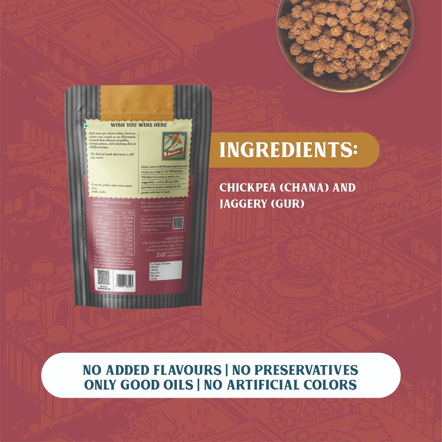 Simple, clean ingredients: Made with just two staplesgur (jaggery) and chana (chickpeas)with no additives or fuss.