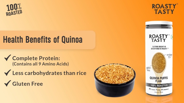 LOW FAT LOW CALORIE VEGAN PRODUCT : The Quinoa Seeds Plain Flavour is a Healthy Snacks for weight loss & good alternative to fried snacks & namkeen. Having Zero & Zero Trans-Fats this Diet food snack is also good for Heart Health. So make Roasty Tasty th