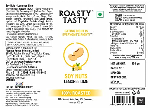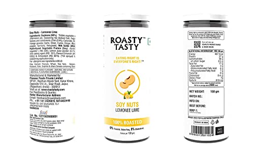 Roasty Tasty Roasted SOYA Nuts Lemonee Lime Flavour Diet Snacks Food for Weight Loss Multigrain Superfood Soyabean Roasted Snack (150g)