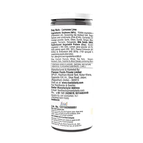 UNIQUE FLAVOUR: Soya Nuts Lemonee Lime with coriander dry mango powder garlic onion cumin ginger black pepper turmeric lemon juice powder