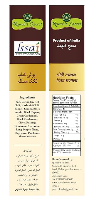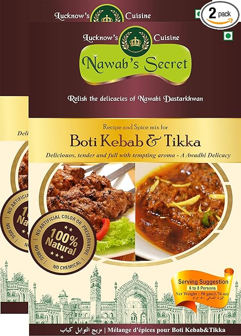 Nawab's Secret Chicken Boti Kebab/Chicken Tikka - Indian Spices 50 Gm[Pk Of 2]