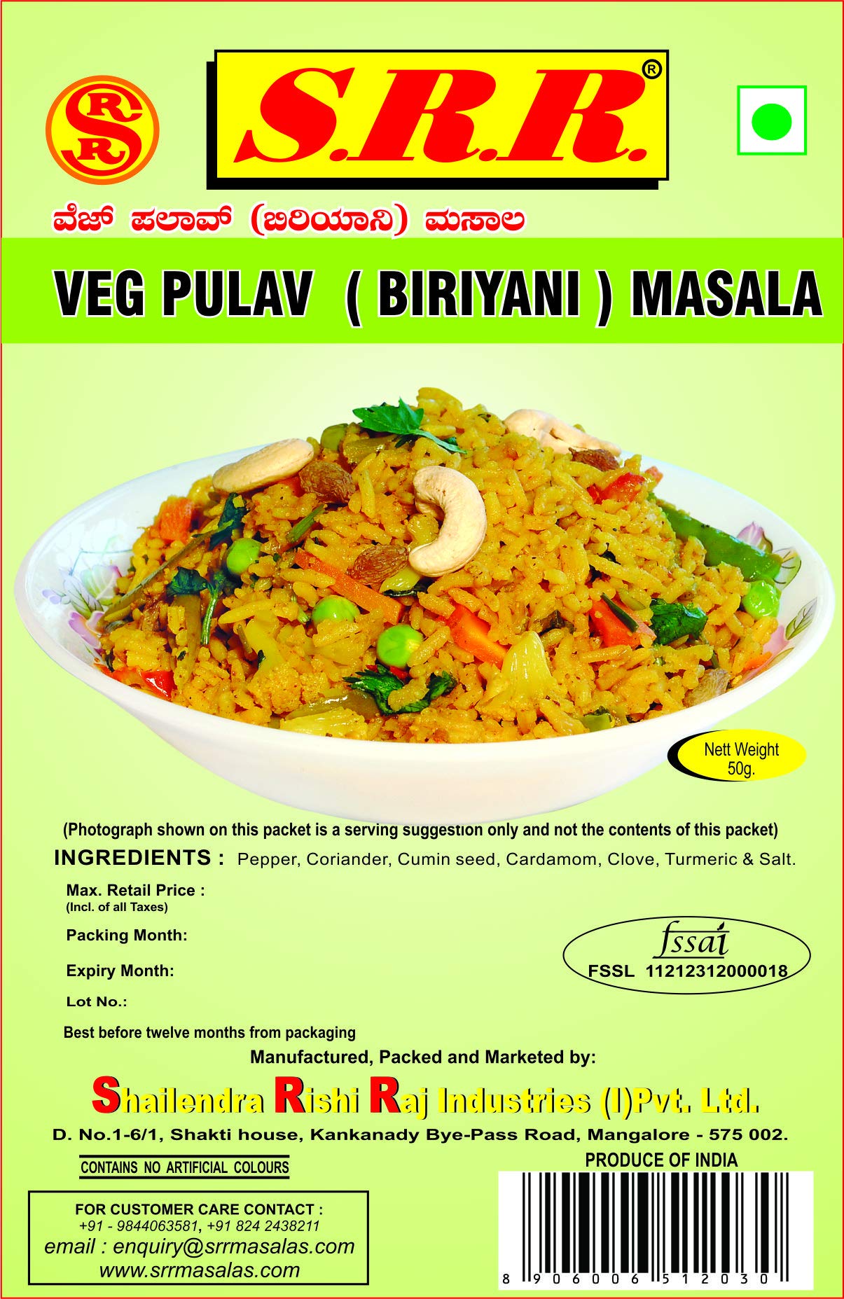 SRR Veg pulav/Veg Biryani Masala (Pack of 5) 50gms Each