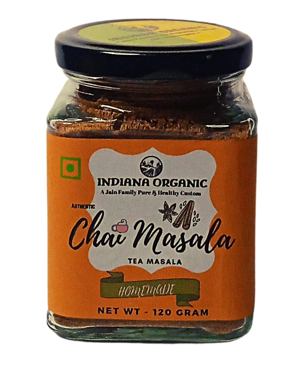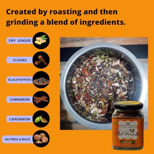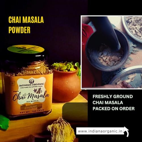 Indiana Organic chai masala Powder 120gm | 240 Cups tea masala | Kadak Chai with 7 Aromatic Spices, Invigorating, Refreshing, Immunity Booster with No Preservative Packed on order fresh.