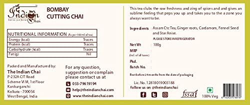 HomeGrocerySpicesInstant SpicesChai MasalaThe Indian Chai - Bombay Cutting Chai 100g Blended with Sonth Elaichi Saunf and Chakra Phool for Relaxation Indigestion Gas & Constipation Helps Regulate Blood Pressure