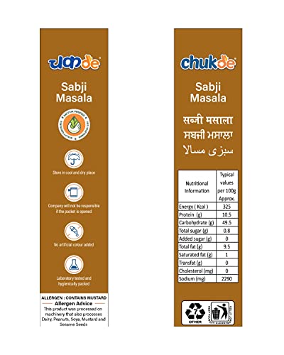 Chukde Sabji Masala - 500gm (100gmx5) | Premium Spice Blend for Flavorful Indian Vegetables | Coriander Cumin Turmeric Red Chili and More | Laboratory Tested and Hygienically Packed | Microbe Free