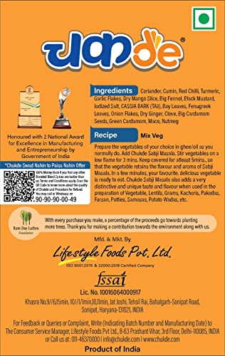 Delicious Blend: Chukde Sabji Masala a blend of 24 aromatic spices including cumin coriander and red chili for an authentic Indian flavor.