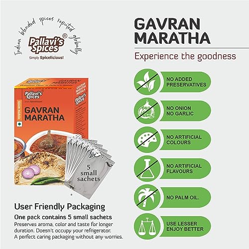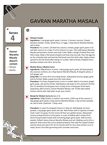 Pallavi's Spices Gavran Maratha Masala | Gavran Chicken/Mutton | Dhaba Style Veg Recipes | Spice Blend/Powder | 5x10g sachets/pack | 50g (Pack of 4)