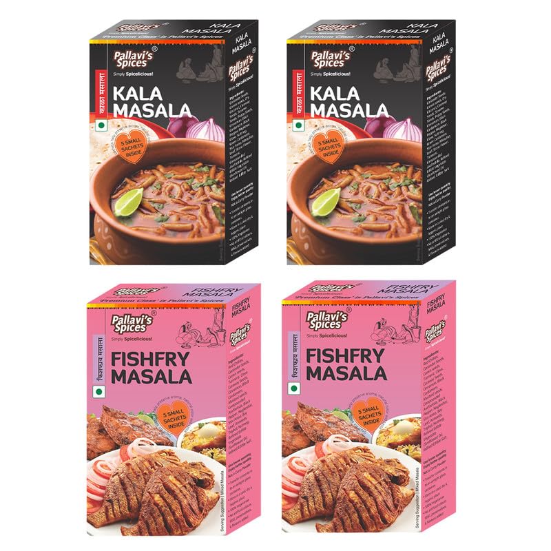 Pallavi's Spices Kala Masala (50gx2) Fish Fry Masala (50gx2) | No Artificial Color | No Preservatives | Indian Masala | Pack of 4