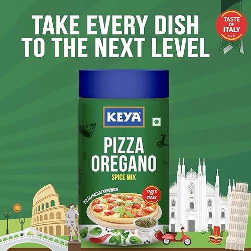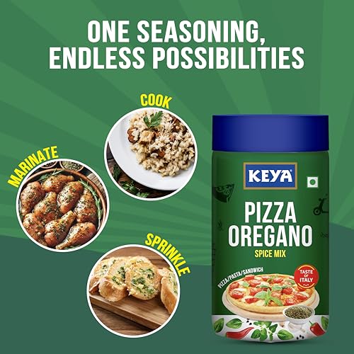 Keya Italian Pizza Oregano | Pizza Oregano Spice Mix | Healthy Italian Seasoning | Multipurpose Seasoning| 100% Natural | Vegan | Zero Preservatives, Artifical Colours & Flavours |No MSG | Marinade Mix, Dip Mix, Sprinkler |Perfect for Pizza, Pasta, Garlic