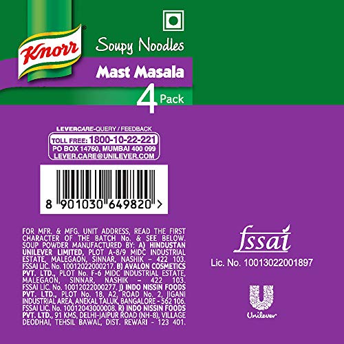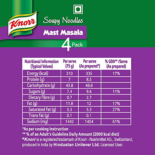 Knorr Soupy Noodles, Mast Masala, (Pack of 4), 280 grams