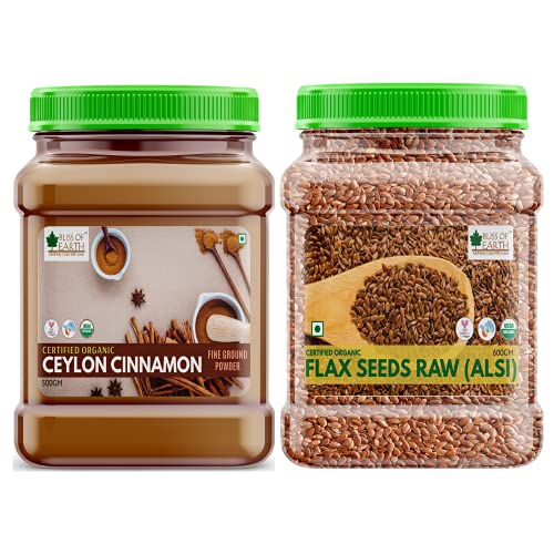 Bliss of Earth Combo Of Ceylon Cinnamon Powder Organic (500gm) And Organic Raw Flax Seeds (600gm) For Weight Loss Pack Of 2