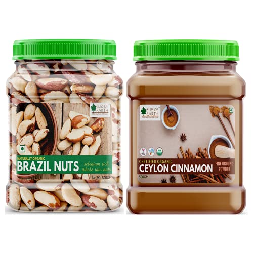 Bliss Of Earth Combo of Healthy Brazil Nuts Selenium Rich Super Nut and Organic Ceylon Cinnamon Powder for Weight Loss Drinking & Cooking Dal Chini Powder Pack of 2 (500gm Each)