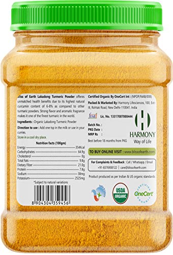 Bliss of Earth Certified Organic Dried Ginger PowderCinnamon Powder and Turmeric Powder for Cooking