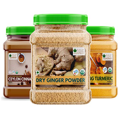 Bliss of Earth Certified Organic Dried Ginger PowderCinnamon Powder and Turmeric Powder for Cooking & Drinking Pack of 3 (500gm Each)