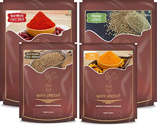 NETT CONTENTS: 500g Red Chilli Powder 500g Dhaniya Powder 200g Haldi Powder 200g Jeera Premium of 4 Spices Powder in One Buy. Escape from buying each one of them separately.