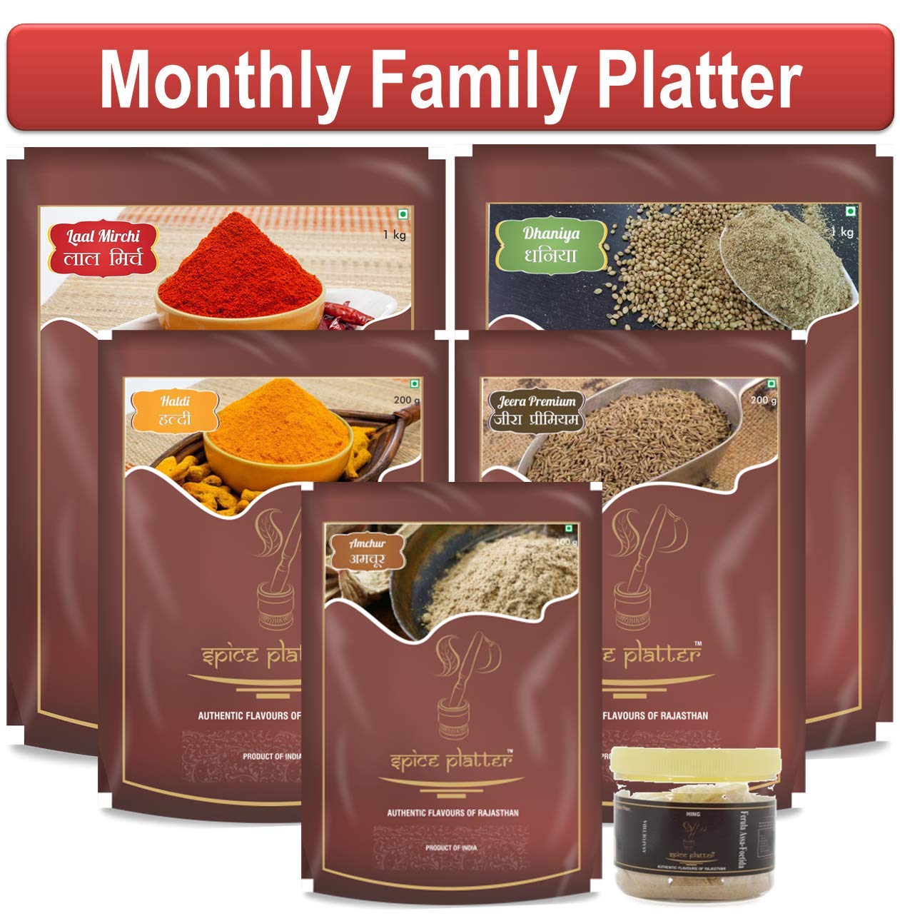 Spice Platter Monthly Family Spice Platter Combo Pack(Red Chilli Powder Dhaniya Haldi Jeera Hing Amc