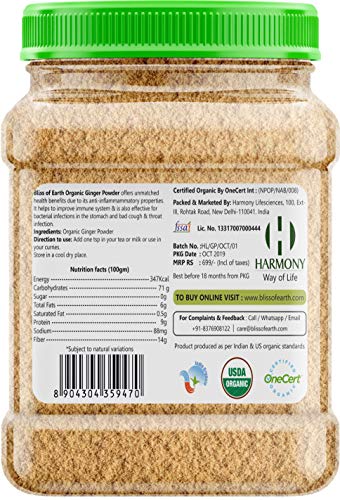 ORGANIC NON-GMO GLUTEN FREE: Bliss of Earth ginger powder is dehydrated at a low temperature that makes the powder fresh keeping its nutrients intact. Its completely gluten-free and non-GMO.