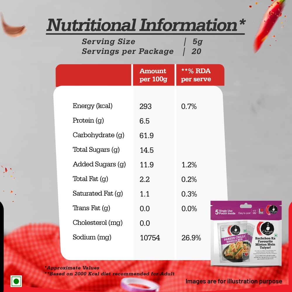 Ching's Secret Paneer Chilli Masala - 5 Single Use Pouch - 100 Gram