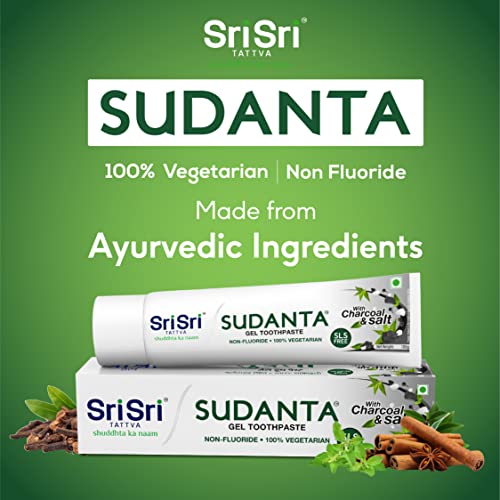 Sri Sri TATTVA shuddhta ka naam Sudanta Ayurvedic Herbal Gel Fresh Breath Toothpaste - All Natural,Sls Free,Fluoride Free Tooth Paste With Charcoal,Salt & More - 100G(Pack Of 1),For Kids And Adults