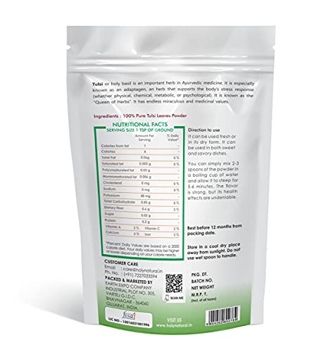 Holy Natural Tulsi Leaves powder (250 gm) Holy Basil Powder for Health Skin & Hair Supports Immunity
