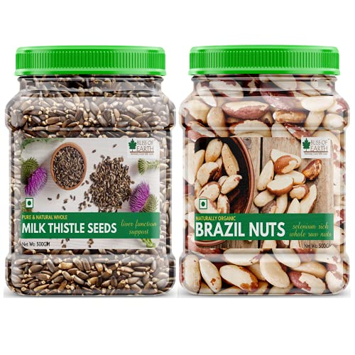 Bliss of Earth Combo Of Healthy & Tasty Brazil nuts And Milk Thistle Seeds Super Food For Liver Cleansing Immunity Boosting And Blood Sugar Control (Pack Of 2x500gm)