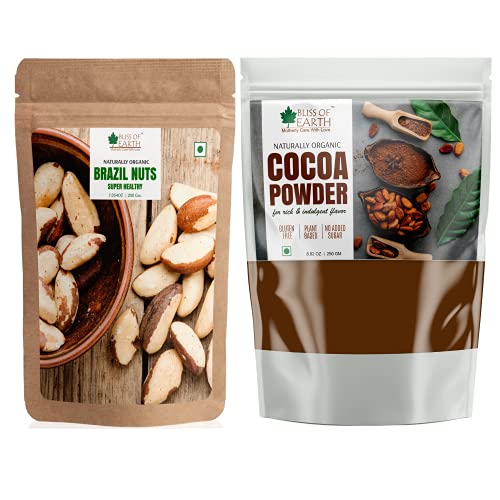 Bliss Of Earth Combo of Healthy Brazil Nuts (200gm) Selenium Rich Super Nut and Alkalized Dark Cocoa Powder (250gm) for Chocolate Cake Making & Chocolate Hot Milk Shake Unsweetened Pack of 2