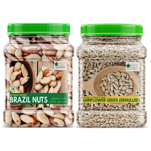 Bliss Of Earth Combo of Healthy Brazil Nuts Selenium Rich Super Nut (500gm) and Dehulled Sunflower Seeds (600gm) for Eating & Weight Loss Pack of 2