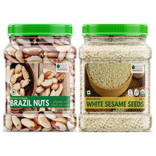 Bliss Of Earth Combo of Healthy Brazil Nuts Selenium Rich Super Nut (500gm) and Organic Sesame Seeds (600gm) White for Eating Raw Til Seeds Pack of 2